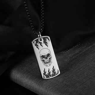 Dây chuyền titan mặt thẻ bài kép hình đầu lâu lửa khắc rỗng không gỉ