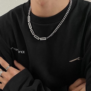 Dây chuyền titan phối 2 kiểu xích chữ nhật và xích vát cạnh không gỉ MN01