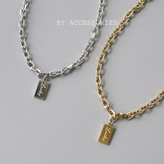 Dây chuyền titan xích tròn vát cạnh phối mặt chữ nhật Lucky không gỉ
