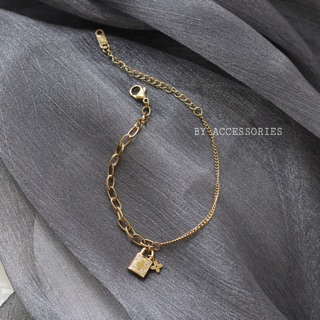 Lắc tay titan ổ khoá nhỏ xinh đính đá lấp lánh không gỉ