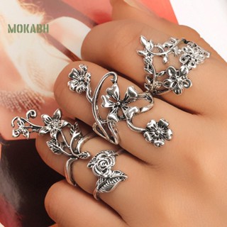 Bộ 4 Nhẫn Midi Đeo Khớp Ngón Tay Hình Hoa Lá Kiểu Vintage Thời Trang Cho Nữ