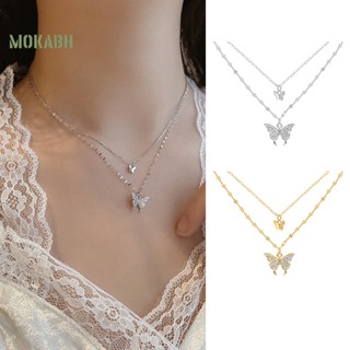 Vòng cổ Hai Lớp Bằng Hợp Kim Mặt Hình Bướm Chống Rỉ Sét Thời Trang Cho Nữ
