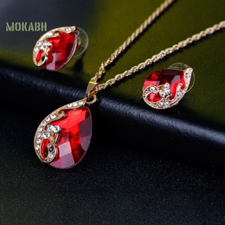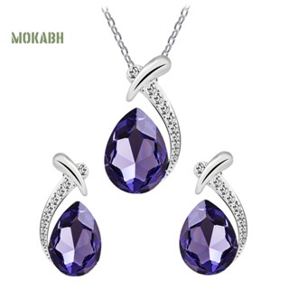 Bộ Vòng cổ + Bông Tai Đính Đá Hình Giọt Nước Sang Trọng Cho Nữ