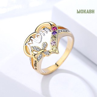 Nhẫn Đính Đá Zircon Hình Trái Tim / Chữ Mom Lãng Mạn Cho Nữ