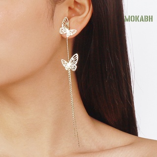 Bông Tai Dáng Dài Hai Lớp Bằng Kim Loại Hình Bướm Thời Trang Dự Tiệc Cho Nữ