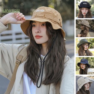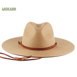 [Mok Abh] Mũ Tai Bèo Dệt Kim Vành Rộng Màu Trơn Có Dây Cột Chống Nắng Phong Cách Đồng Quê Cho Nữ