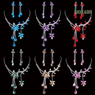 Bộ Vòng cổ + Bông Tai Đính Đá Hình Hoa Thời Trang Cho Nữ
