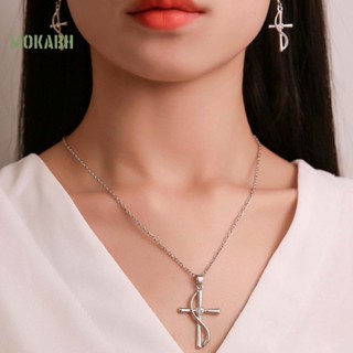 Bộ Vòng cổ + Bông Tai Mạ Điện Hình Chữ Thập Đính Đá Zircon Thời Trang Sang Trọng Cho Nữ