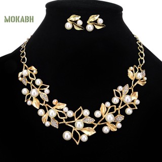 1 Bộ Vòng cổ + Bông Tai Hình Chiếc Lá Đính Đá & Ngọc Trai Giả Sang Trọng