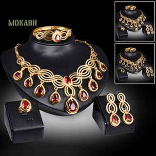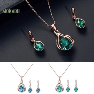Bộ Trang Sức 4 Món Mặt Vòng cổ + Bông Tai Hình Giọt Nước Bằng Hợp Kim