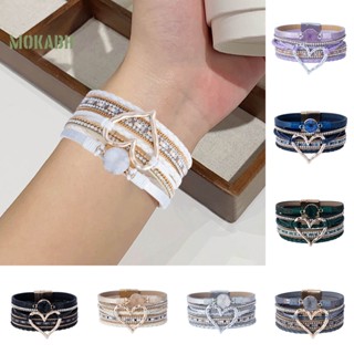 Vòng Tay Giả Da Nhiều Lớp Đính Đá Hình Trái Tim Phong Cách Bohemian Dành Cho Nữ