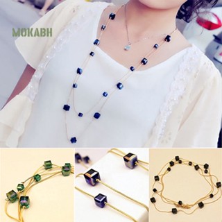 Vòng cổ Dài 2 Lớp Bằng Hợp Kim Đính Đá Vuông Thời Trang Cho Nữ