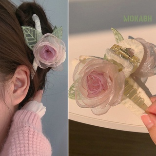 < Kẹp Tóc Càng Cua Bằng Vải Lưới Trang Trí Hoa Tinh Tế Chất Lượng Cao Phong Cách Ngọt Ngào Cho Nữ >