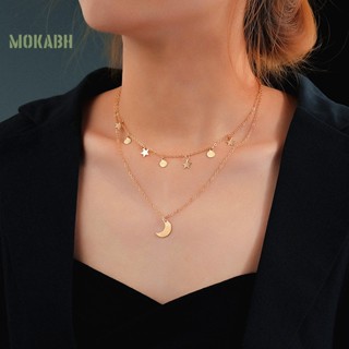 [Mới] Vòng cổ Hai Lớp Mặt Hình Ngôi Sao Mặt Trăng Bằng Kim Loại Có Thể Điều Chỉnh Không Gây Dị Ứng