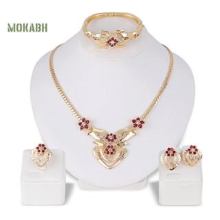 Bộ Trang Sức Gồm Vòng cổ / Bông Tai / Nhẫn / Vòng Tay Hình Hoa / Trái Tim Đính Đá Thời Trang Cho Nữ