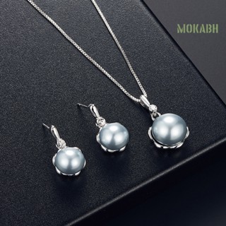 Bộ Vòng cổ + Bông Tai Đính Đá & Ngọc Trai Nhân Tạo Hình Tròn Cho Nữ