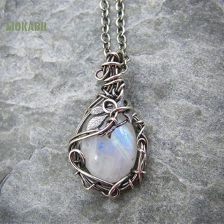 [Mok] Vòng cổ Mạ Bạc Mặt Đá Mặt Trăng Chất Lượng Cao Phong Cách Vintage Cho Nữ