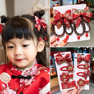 1 Cặp Kẹp Tóc Giả Đính Nơ Tua Rua Phong Cách Trung Hoa Ngọt Ngào Mừng Năm Mới Cho Bé