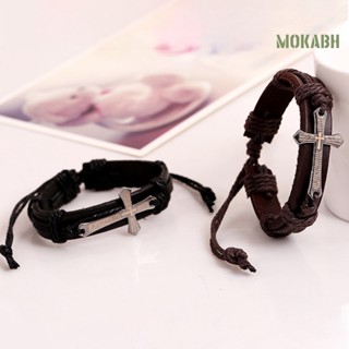 Vòng Đeo Tay Giả Da Họa Tiết Thánh Giá Có Thể Điều Chỉnh Kích Thước Cho Nam