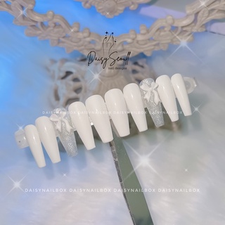 Nailbox trắng thiết kế đính nơ vẽ viền