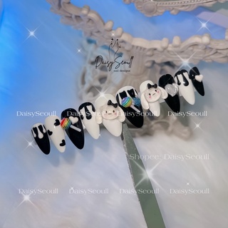 Nailbox thiết kế vẽ móng hình trái tim trắng đen sơn lì