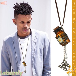 Vòng cổ Da Dài Phối Mặt Hình Lọ Điều Ước Và Bướm Độc Đáo