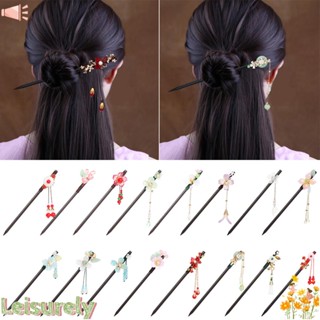 LEILY Trâm Cài Tóc Bằng Gỗ Mun Đính Hoa Phối Tua Rua Phong Cách Retro