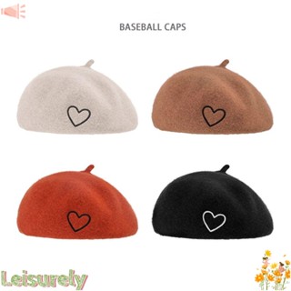 LEILY Mũ Beret Len Thêu Trái Tim Nhã Nhặn