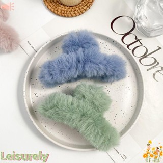 LEILY Kẹp Tóc Càng Cua Đính Lông Giả Màu Sắc Tinh Khiết