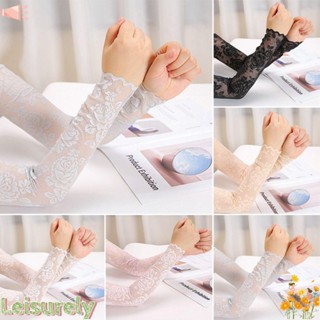 Găng Tay Dài Hở Ngón Chống Nắng Phối Ren Rỗng Dùng Khi Đạp Xe