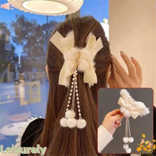 Kẹp Tóc Đuôi Ngựa Đính Nơ Phối Lông Phong Cách Hàn Quốc Thời Trang