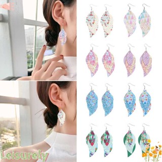 Bông Tai Giả Da Đính Kim Sa Hình Hoa Lá Thời Trang Lễ Phục Sinh
