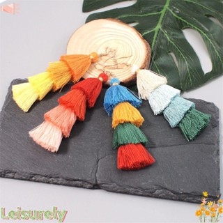 1 Đôi Bông Tai Tua Rua Dài Màu Gradient Phong Cách Boho Dân Tộc Cho Nữ