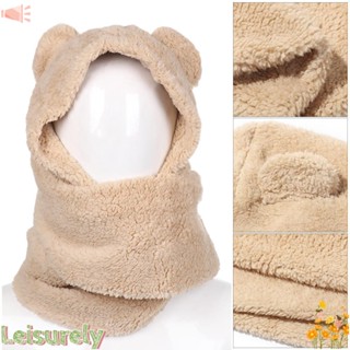 LEILY Mũ Trùm Đầu Kèm Khăn Choàng Chống Gió Hình Tai Gấu Xinh Xắn