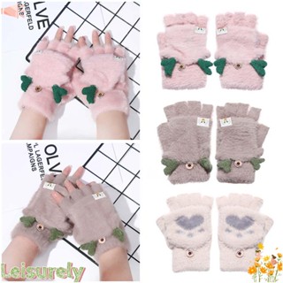 1 Cặp Găng Tay Lông Mềm Mại Họa Tiết Tai Thỏ Hoạt Hình Dễ Thương Cho Nữ