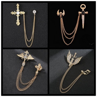 Ghim Cài Áo Hình Thánh Giá Phối Dây Xích Phong Cách Hip Hop Thời Trang Cho Nam
