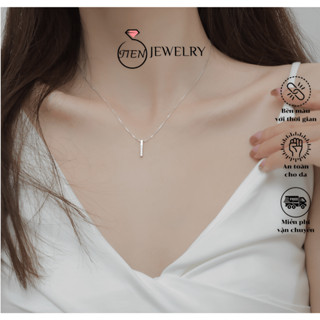 Dây chuyền bạc thanh dài đính đá 1 hàng nữ 925, vòng cổ thanh dài mặt đá 1 hàng bạc 925 - Tien Jewelry