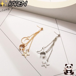 1 khuyên tai tua rua dài hình mặt trăng ngôi sao nhiều màu thời trang cho nữ