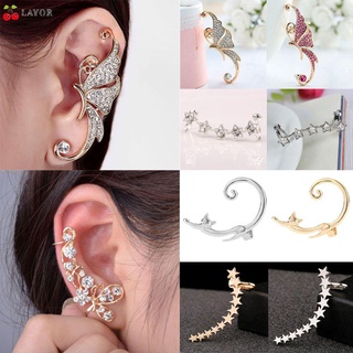 1 Đôi Khuyên Kẹp Vành Tai Hình Hoa/ Mèo/ Bướm Đính Đá Thời Trang Cho Nữ|Khuyên Tai