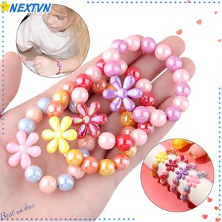 Vòng Tay Chuỗi Hạt Gắn Hoa Nhiều Màu Xinh Xắn Cho Bé Gái