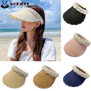 WONDER Mũ Rộng Vành Chống Nắng Tia UV Hở Chóp Đính Ngọc Trai Thời Trang