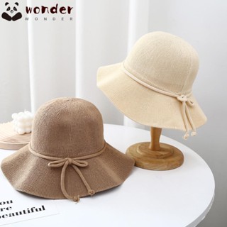 WONDER Mũ Cói Rộng Vành Chống Nắng Đính Nơ Thoáng Khí Thời Trang Cho Nữ
