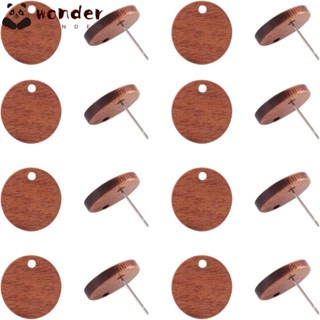 WONDER Hạt Gỗ Óc Chó Hình Tròn Dẹp 15mm Bằng Thép Không Gỉ Làm Bông Tai Trang Sức Cho Nữ
