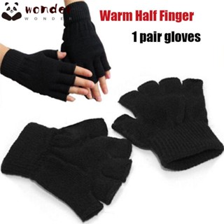 WONDER 1 Đôi Găng Tay Dệt Kim Giữ Ấm Nửa Ngón Cho Nam Nữ