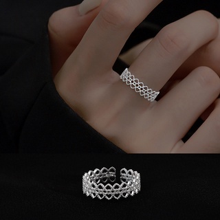 Nhẫn Hở Mạ Bạc 925 Hình Trái Tim Rỗng Có Thể Điều Chỉnh Kích Cỡ