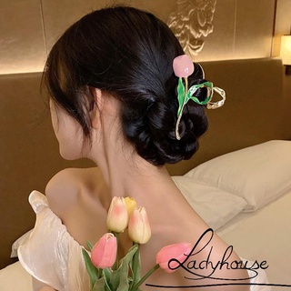 Kẹp Tóc Càng Cua Hình Hoa Tulip Bằng Kim Loại Dễ Thương Thời Trang Cho Nữ