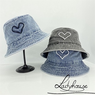 Nón Tai Bèo Màu Xanh Dương / Xám Thêu Họa Tiết Trái Tim Dễ Thương Thời Trang Cho Nữ