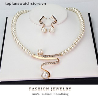 Bộ Vòng cổ + Bông Tai Đính Ngọc Trai Nhân Tạo Thời Trang Cho Nữ