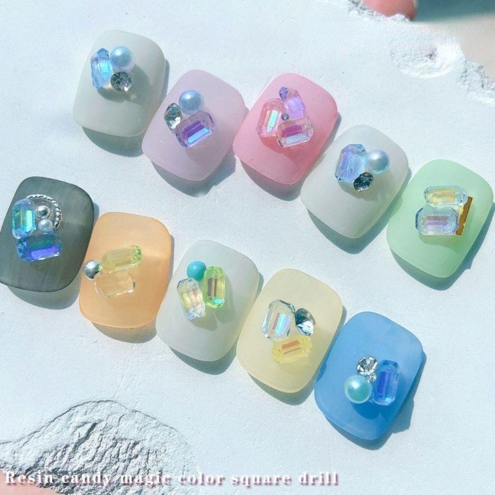 Vui lòng cho phép sự khác biệt kích thước nhỏ do đo lường thủ công khác nhau . Nail Art Charms Nail Art Jewelry Trang sức 3D Nail Rhinestones Phụ kiện làm móng Tự làm móng Chất liệu làm móng Nail Salon Nail Beauty Love Heart Square Symphony Aurora Resin 100 PCS