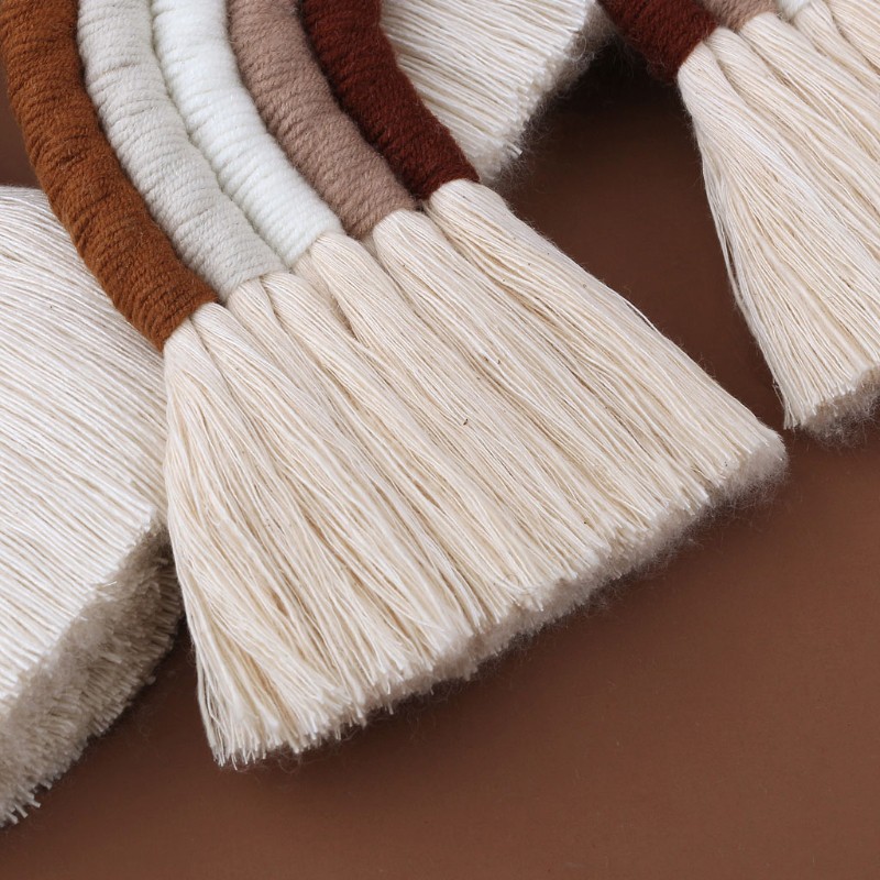 Features: Handcrafted rainbow. Includes 5 lines with vivid color, elegant and universal, this rainbow wall hanging is a good choice for seasonal and holiday decorating, or child's room or nursery. MATERIAL: Handcrafted Beautiful Decorations made of Yarn and Cotton Rope. Add character and charm to any wall in your house with this woven rainbow wall hanging. PROCESS: Using multi-color cotton ropes, handmade into the rainbow wall hanging. A little rainbow to brighten your room and then brighten your day. WIDE APPLICATIONS: Perfectly fits baby nursery, kids' room, living room, bedroom, dorm room, apartment, gallery and backdrop decorations. Makes a lovely addition on special occasions as your will, like Birthday party, Baby shower, Wedding, or Festival. Using natural materials giving a minimalist feel and creating a relaxed feel in any room. Just hang it on walls, cribs' side, shelves, bedpost, mirrors, fireplace, window or anywhere you like. Perfect gift for newborns as well.